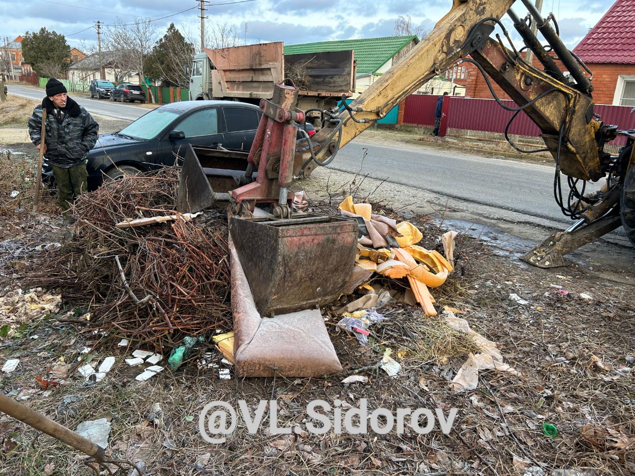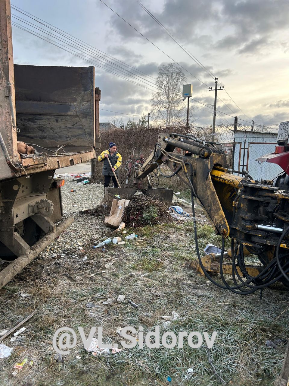 С раннего утра, несмотря на выходной день, специалисты МБУ 'ОСЦ' осуществляют работу по ликвидации стихийных свалок в городе.