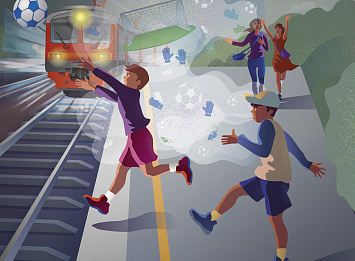 Переходить железнодорожные пути можно только в установленных и оборудованных для этого местах, убедившись в отсутствии приближающегося поезда или на разрешающий сигнал переездной сигнализации. Для перехода через железнодорожные пути пользуйтесь пешеходными переходами, мостами, тоннелями. При переходе по пешеходному переходу снимайте наушники и капюшон, они могут помешать вам заметить приближающийся поезд.
